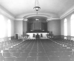 On May 20-23, 1921 the church dedicated its new sanctuary. Designed by architect E.E. Kuenzli, a church member, the building and its furnishings represented an investment of $118,258.04 funded in part by a mortgage of $38,650.00 on the church and parsonage. This sanctuary, presently still in use, was connected to the original structure which had been turned ninety degrees and moved back on the church grounds to form a wing for Sunday School classrooms and recreation facilities.